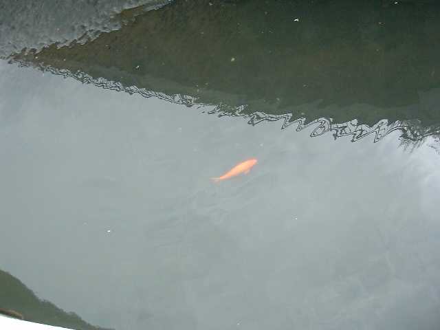 こんな汚れた川にも鯉が棲んでいることを発見した。