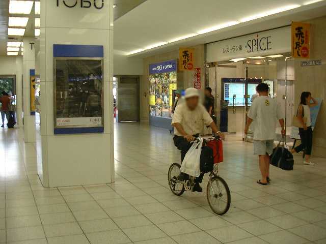 駅周辺での迷惑駐輪のことは知っていたが、歩行者の通路であるべき駅の構内でも自転車に乗って通行する者が居るとは驚いた。昔はこんなことは無かったように思う。