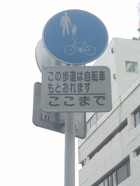 実際は、こんな標識はお構いなしで、平気で自転車に乗って通行している老若男女が殆どである。