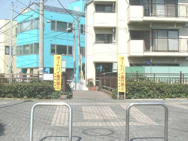 近くの川に沿って遊歩道ができているが、その川に架かる橋を渡る場合は遊歩道を横切ることになる。