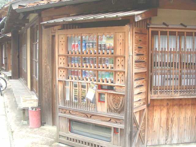 普通の自動販売機であるが、街並みの景観に合わせて、このような装いで置かれていた。