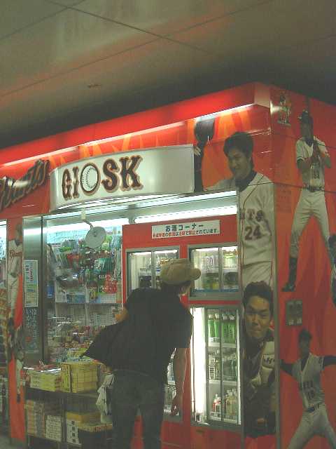 読売ジャイアンツのグッズを売る店のようでもあるが、普通の新聞、雑誌や飲み物なども売られている。
