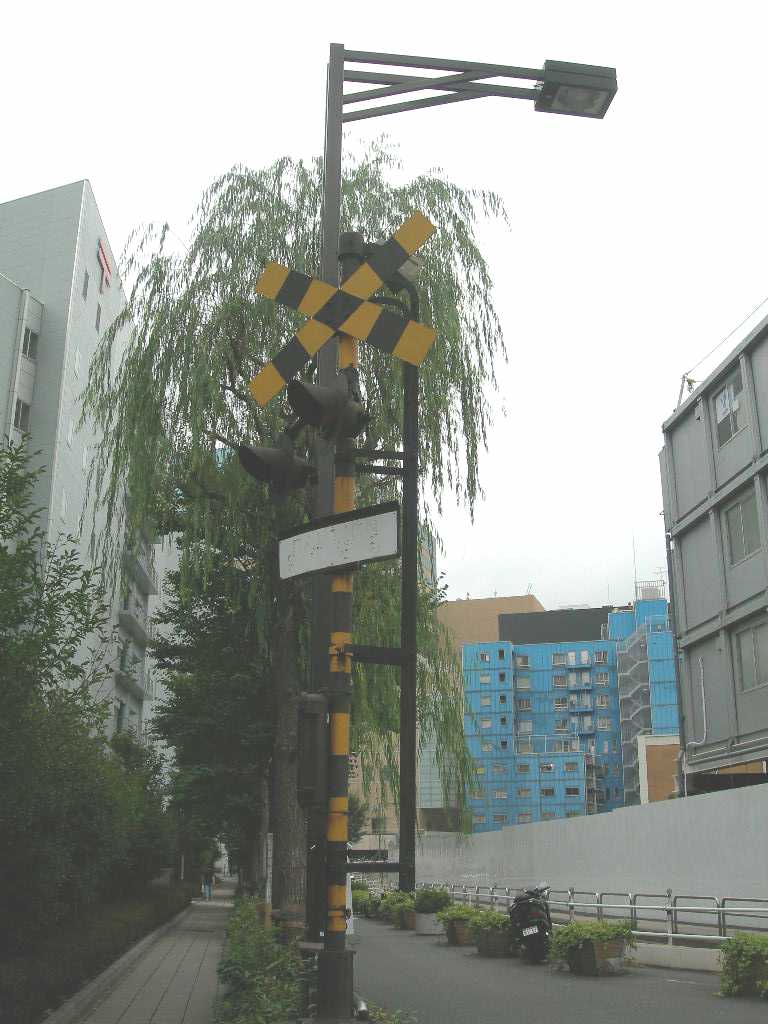 元この高速道路の下には汐留川が流れ、鉄橋も架かっていました。 汐留駅は、わが国の鉄道開業当時における始発駅の新橋駅でしたが、大正3年 (1914)東京駅が中央駅になると、ここは貨物駅になりました。大震災後、築地に東京中央卸売市場が完成すると、汐留駅と市場間に貨物運搬のための線路がしかれ、大きな働きをしたのです。 都民の暮らしの台所を支えて来たこの信号機を、国鉄廃止に当たり捨て去られるのにしのびず、東京中央卸売市場、東京都第一事業所並びに中央区教育委員会、地元各位の多大な御協力に依り。ここに永久保存されることになりました。 昭和32年(1987)12月 銀座御門通り会