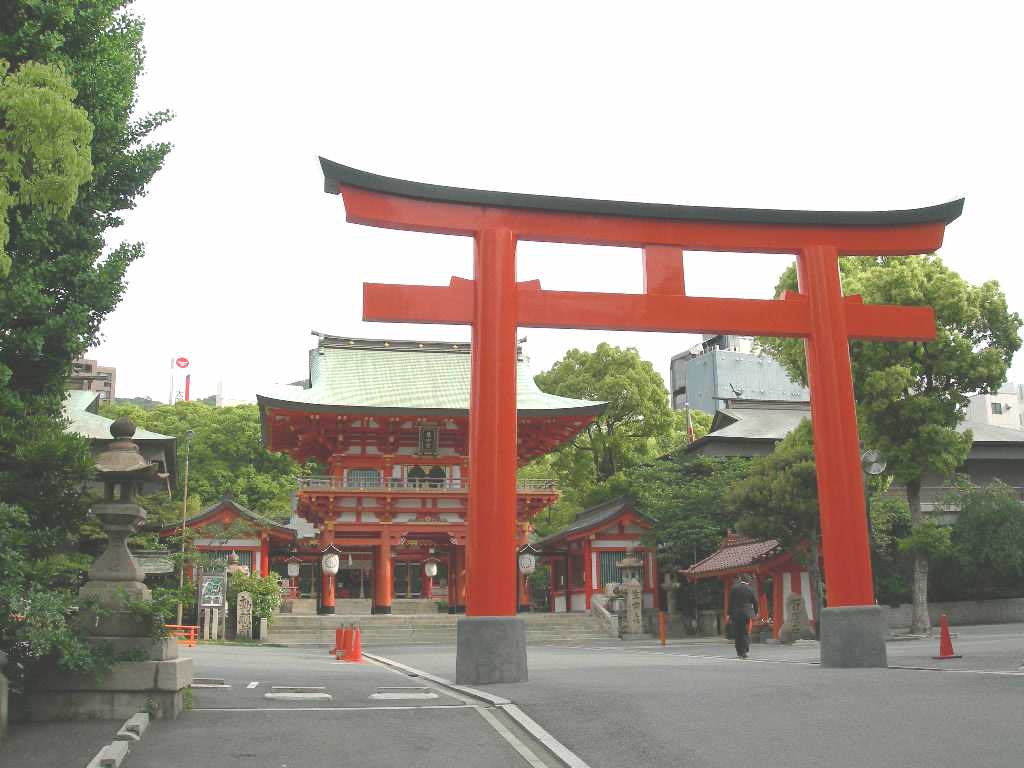 当社は稚く瑞々しい日の女神「稚日女尊」をお祀り申し上げ古く神功皇后 三韓よりご帰還の砌、 御神誨によって「活田長峡国」即ち現今の処に御鎮斎になった由緒高い大社で神戸の地名は当社の「神戸」から起こったものであります。