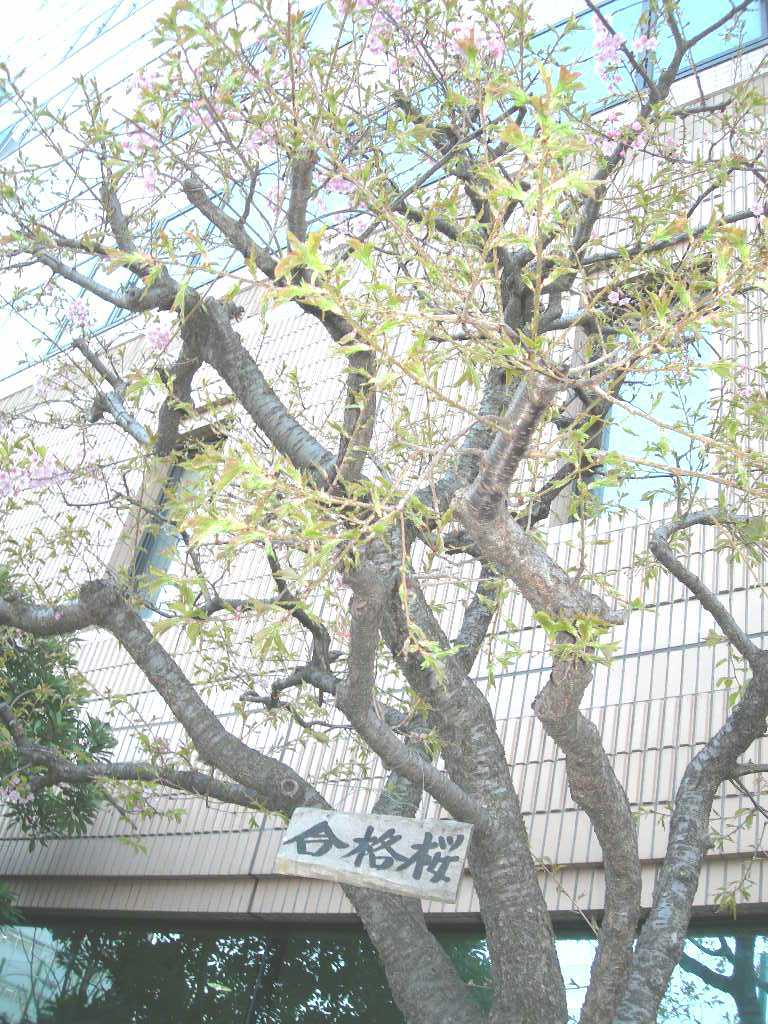 2006年3月11日、河合塾の前を通りかかると合格桜にピンクの花が咲いていた。