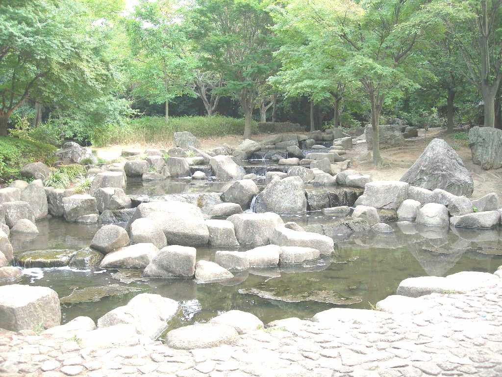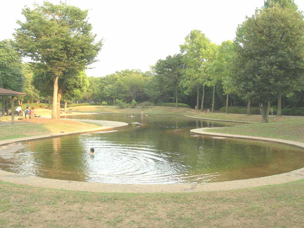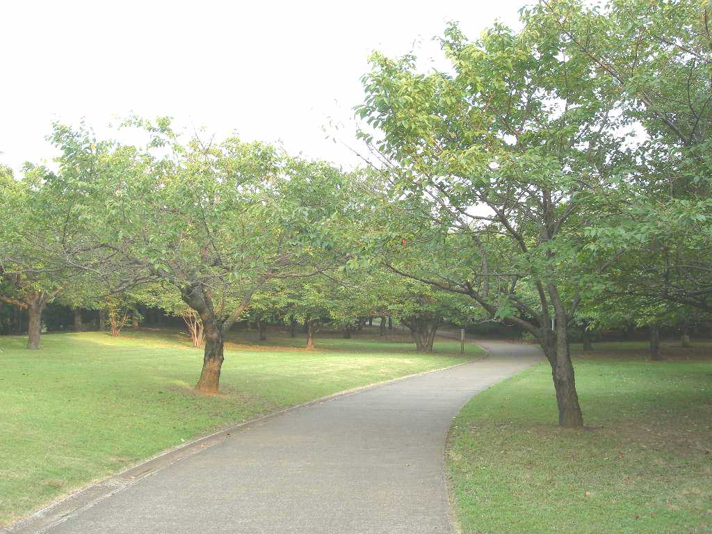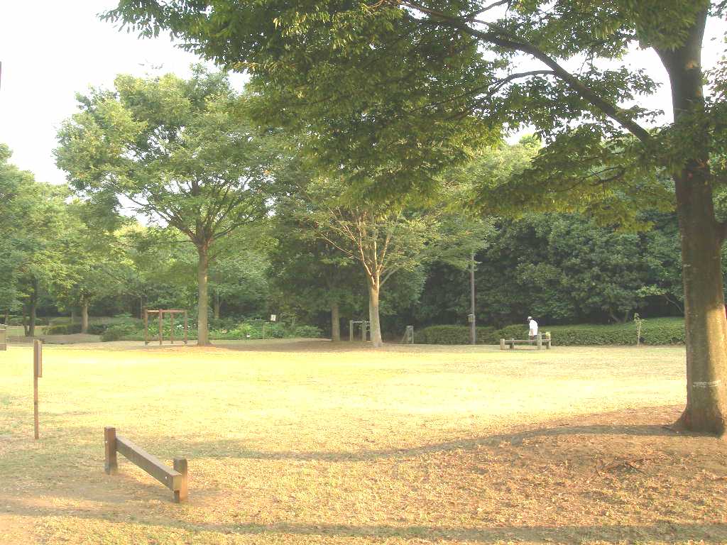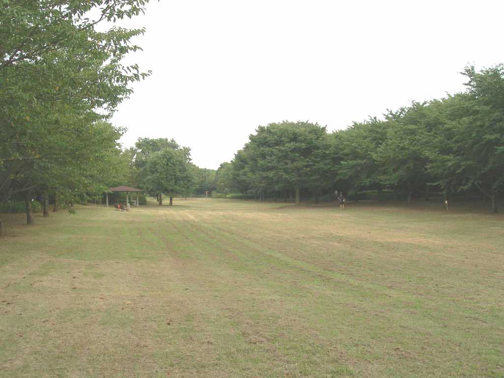 | 香澄公園の西側(新津田沼駅寄り)から入ると、 木々に囲まれた大きな広場があった。 |