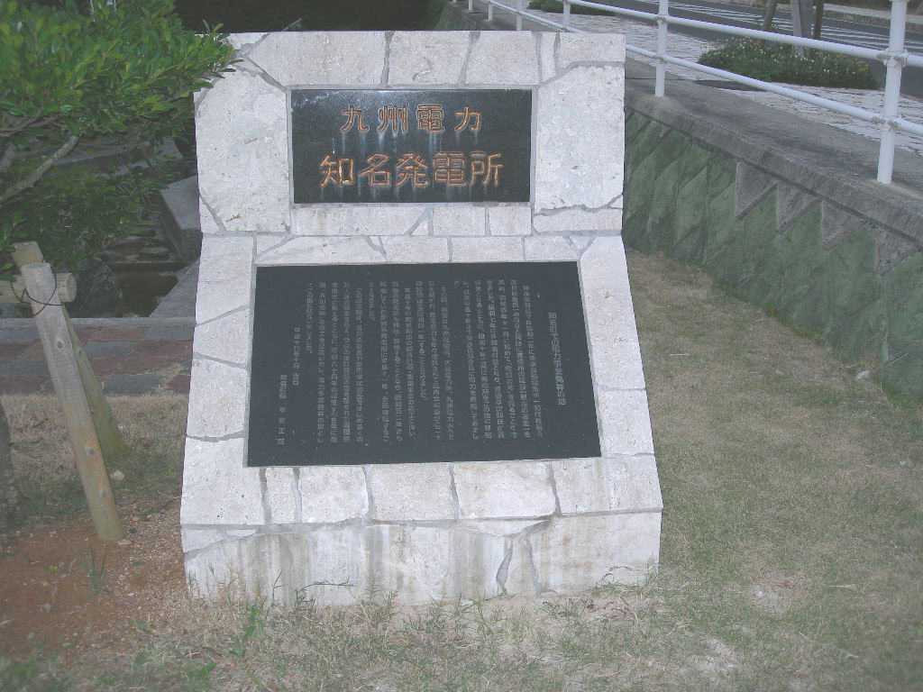 沖永良部島では昭和2年に沖永良部電気(株)(初代社長=吉川前友氏)の設立と同時に発電所の建設(現在の古里)を進め、昭和4年11月に初めて「電灯の光」を見ることができました。昭和7年には知名村営となり、原田孝次郎氏が責任者となるとともに、昭和10年に発電所をこの地に移転し、以来平成10年まで沖永良部全島に電力を供給してきました。 その間、経営は九州配電(株)、大島電力(株)、九州電力(株)へと引き継がれ、発電能力も年々増強されて島内全域並びに24時間送電(昭和41年)することとなりました。 平成10年に知名周辺の都市計画・街路事業の着工に伴い、当地の発電所も移転・解体することとなり、昭和52年から稼働していた新知名発電所に平成11年、全面移転することとなりました。 この記念碑は、吉川前友氏や原田孝次郎氏をはじめ多くの先人達の偉業を称え、今日の本町発展の礎を築かれた御遺徳を後世に伝えるとともに、町制60周年の記念すべき年に街路「大山通線」の竣工を記念いたし、電力事業発祥の地としてこの地に建立いたしました。 平成18年10月 吉日 知名町長 平安正盛
