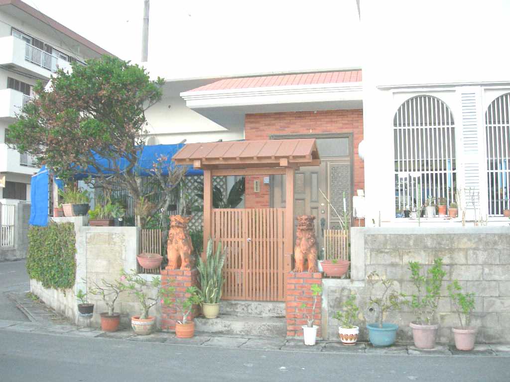 石垣島のホテルの近くを歩いていたら、一般住居の門の両脇にもシーサーが置かれていた。