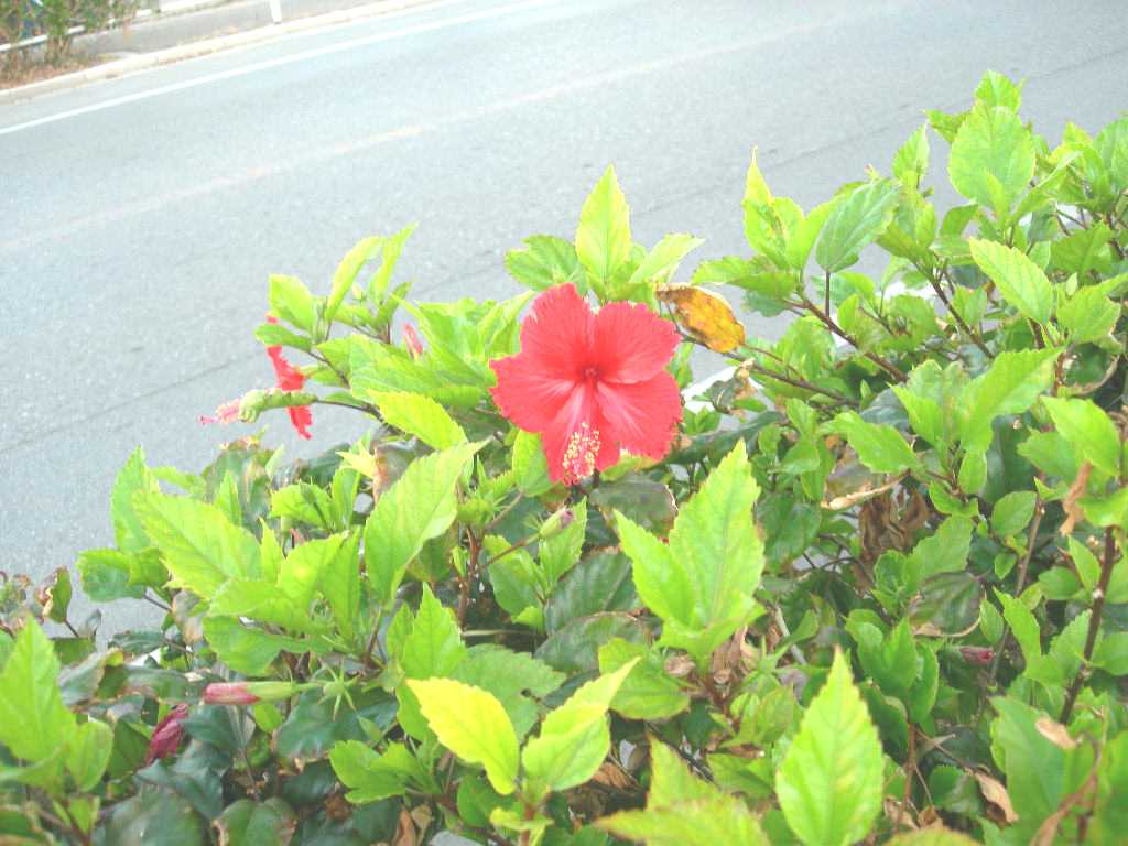 少し大きな花と小さい花の二種類あるようだが、どちらもハイビスカスらしい。