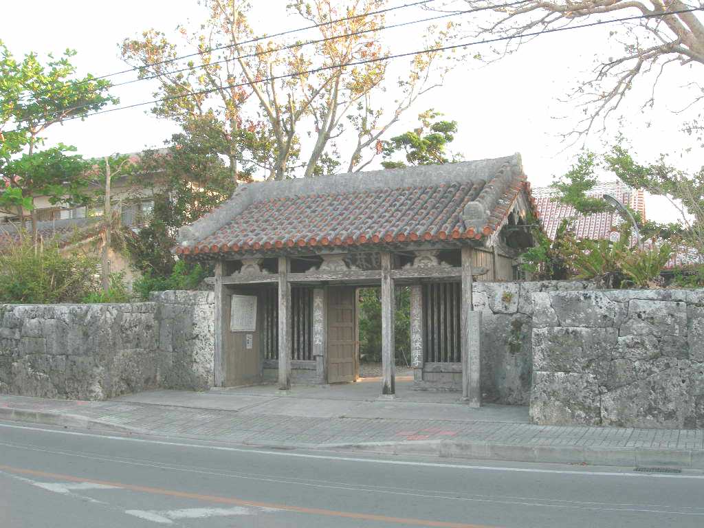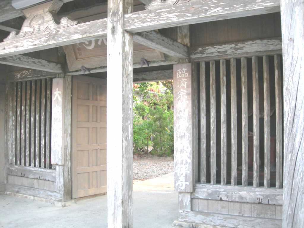 桃林寺仁王像 二躯 元文2年(西暦1737年)文明氏久手堅仁屋昌忠の作。補佐役は上官氏川平仁屋正肖及び松茂氏小濱仁屋當明の両人。用材は八重山産材ドシヌ(おがたまの木)である。 木像は戦前其道の権威鎌倉芳太郎氏及び伊藤忠太博士によってその芸術的価値を其界に紹介された。 像は向かって右は密迹力士、左は金剛力士である。 一、所 在 地 石垣市字石垣285番地 桃林寺山門 一、文化財指定 1956年2月22日 一、管 理 者 桃林寺 社団法人 八重山観光協会