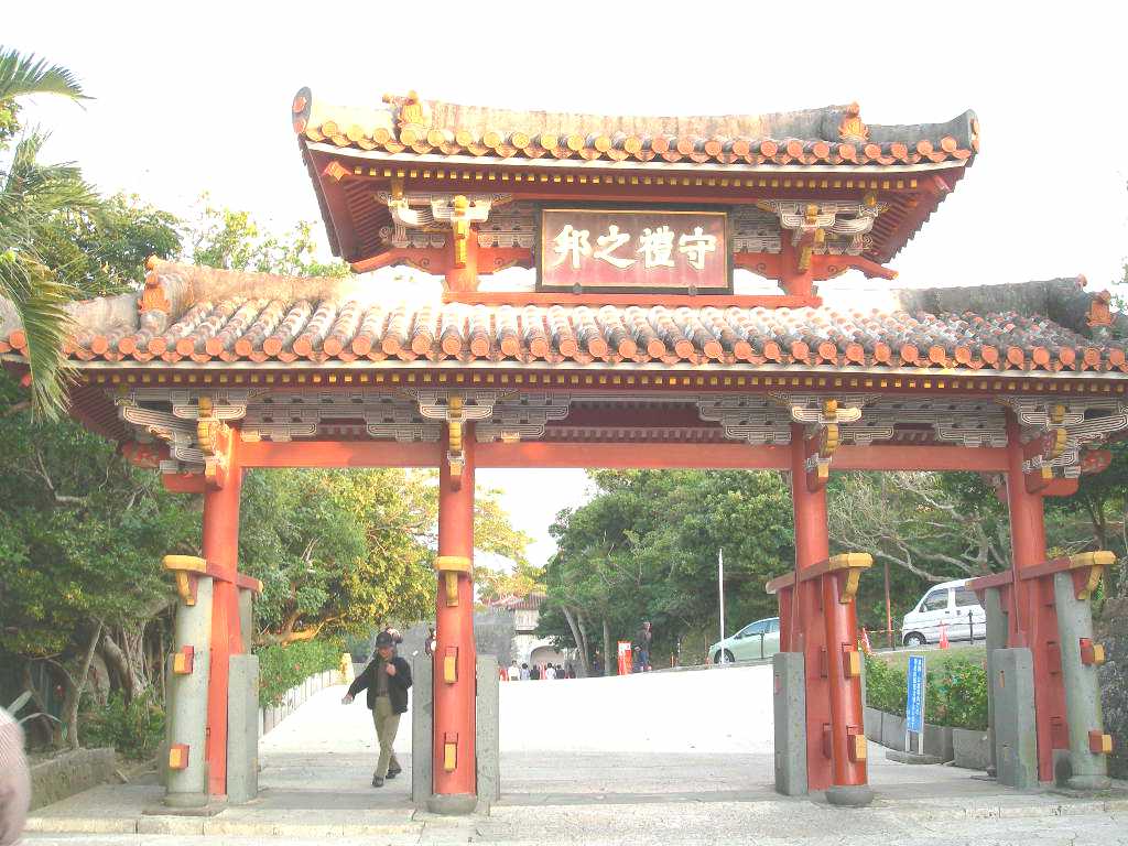 この門は尚清王の代(1527〜1555)に創建され、昭和8年に国宝に指定されたが、沖縄戦で破壊され、現在の守礼門は昭和33年(1958)に復元されたものとのこと。