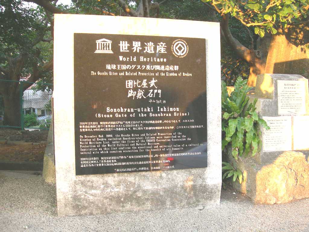 2000年12月2日、園比屋武御獄石門は「琉球王国のグスク及び関連遺産群」のひとつとして、ユネスコの世界遺産条約に基づく世界遺産リストに登録されました。