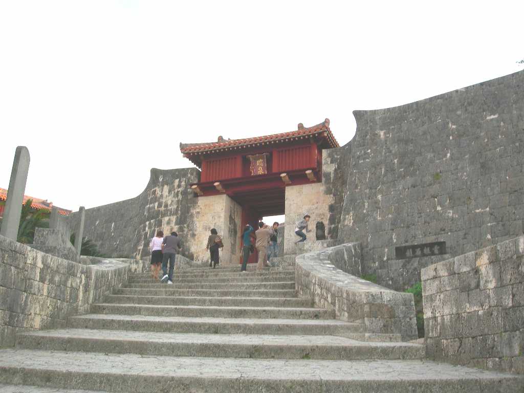 石門の創建は尚真王時代の1519年 1933年には旧国宝に指定されたが沖縄戦で大破 1957年に復元され後に解体修理し1986年に完成した。