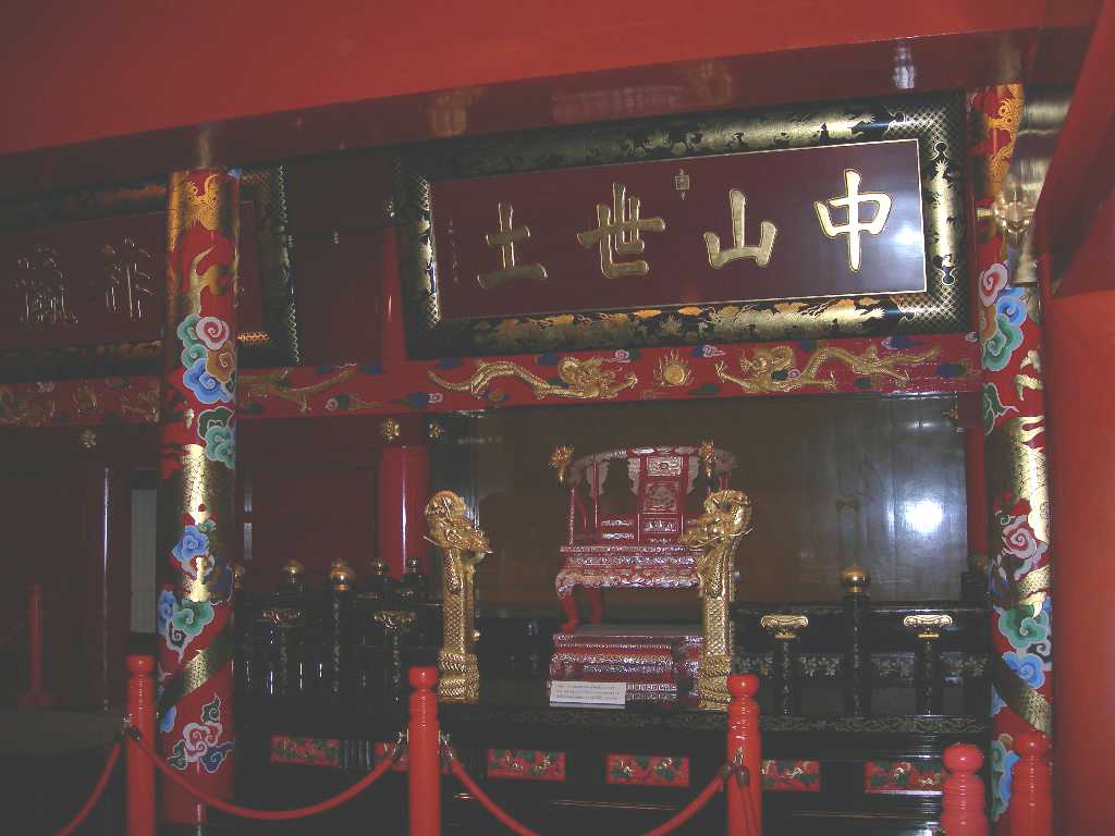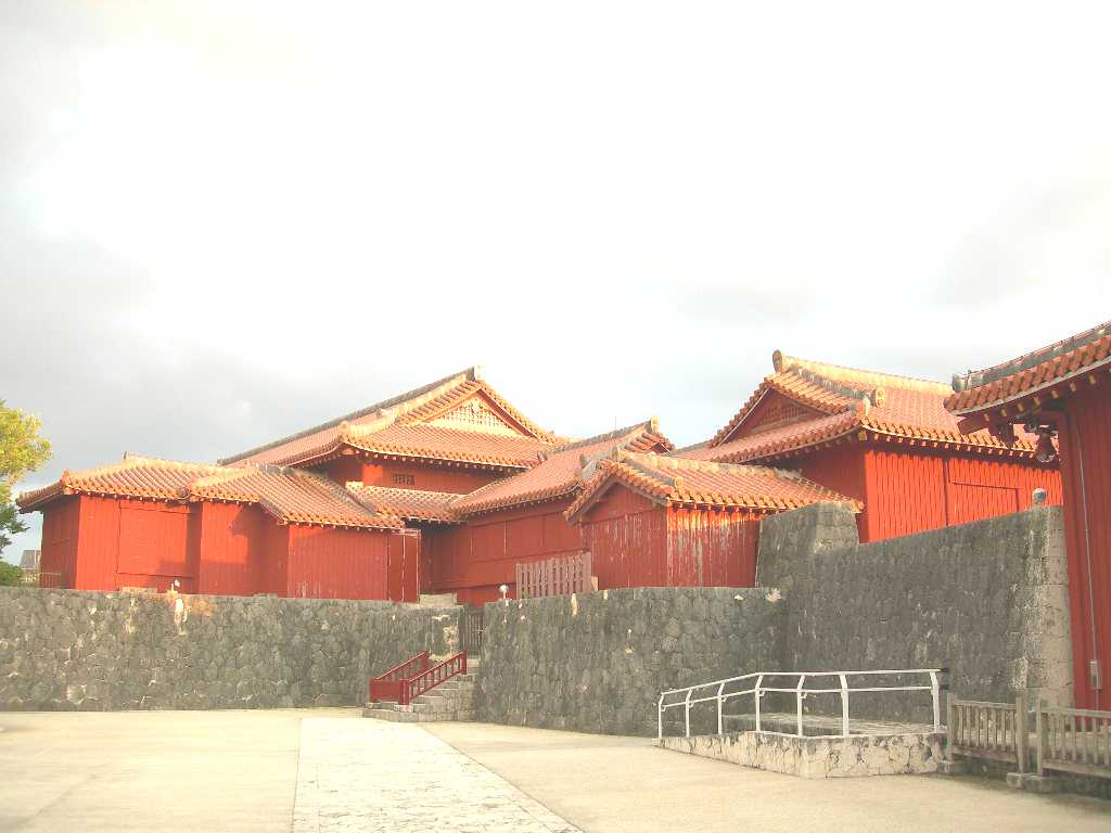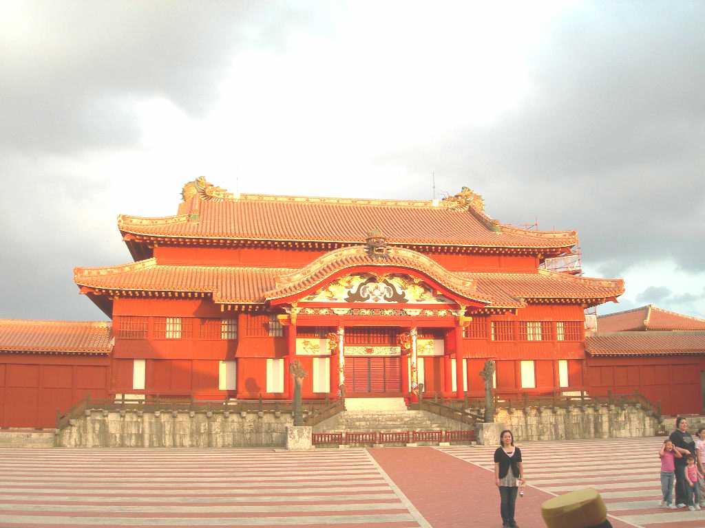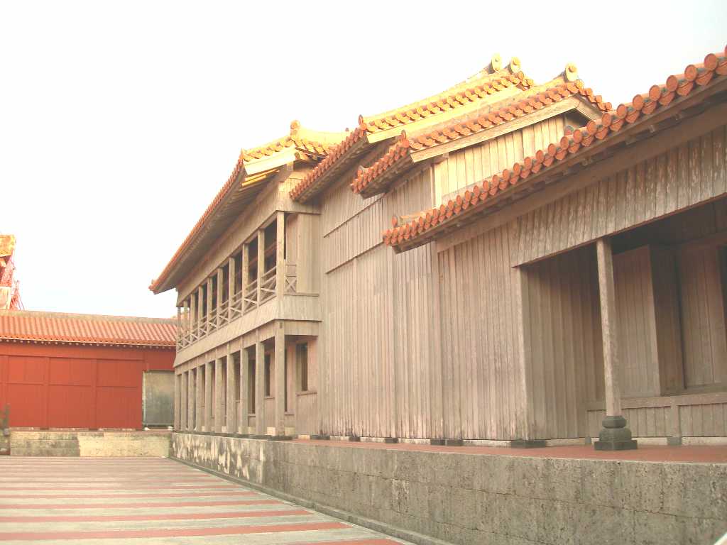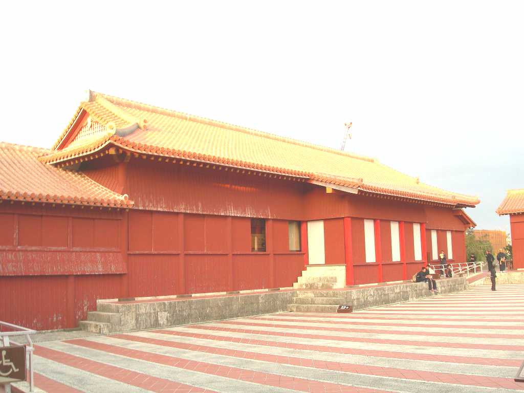 正殿は「百浦添御殿」と呼ばれ、首里城の中心的な施設である。建物は3階建で、1階(下庫理)は国王みずから政治や儀式を執り行う場所、2階(大庫理)は国王や親族、神女たちが儀式などを行う場所、3階は通風を目的とした屋根裏部屋であった。 正殿の建築は、ところどころに中国の宮殿建築の影響が見受けられるが、構造や細部の意匠に日本の建築様式を取り入れており、琉球独特の表現となっている。 発掘調査から、14世紀末の創建と推定されている。その後現在の位置で数度の焼失、再建が繰り返されてきた。 復元された建物は18世紀初めに再建され、沖縄戦で焼失するまで残っていた正殿をモデルにしたものである。 |