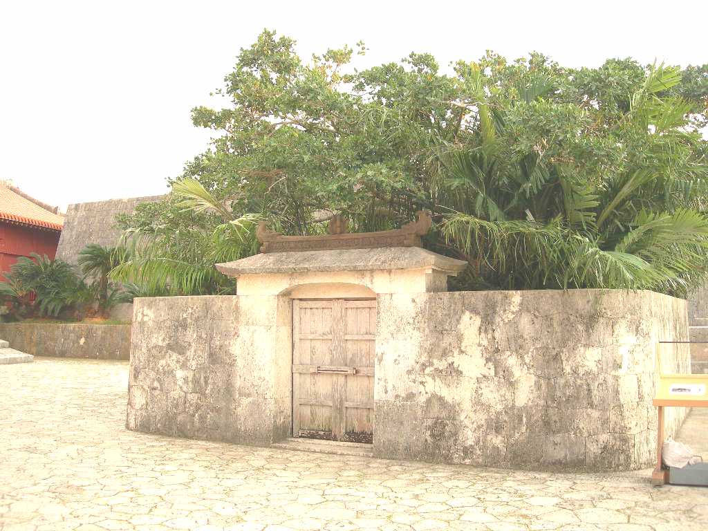 首里森(すいむい)とは首里城の別称で、御獄(うたき)とは沖縄の聖地または拝所のことです。琉球の神話では、この御獄は髪が造った聖地であり、首里城内でもっとも格式の高い拝所の一つです。城内にはここをふくめて「十獄(とたけ)」と呼ばれる10カ所の拝所があったといわれています。 国王が城外の寺社に出かけるときにこの御獄で祈りをささげ、神女たちが多くの儀礼を行いました。 石積内の植物はガジュマルやクロツグです。1997(平成9)年に復元されました。 |