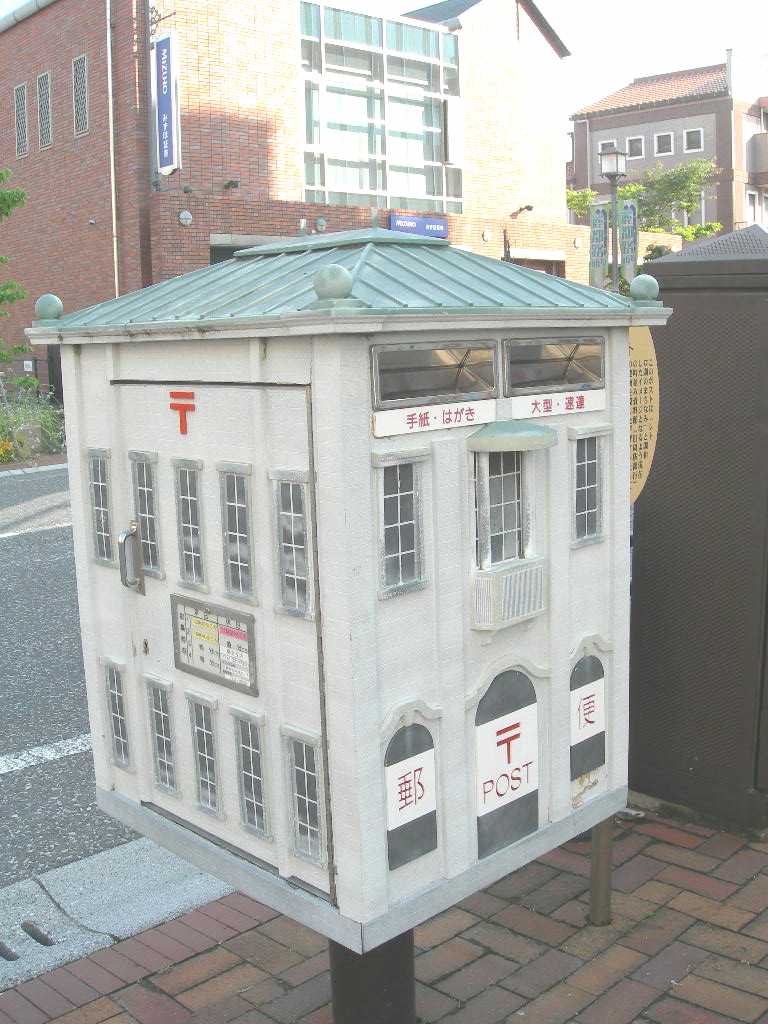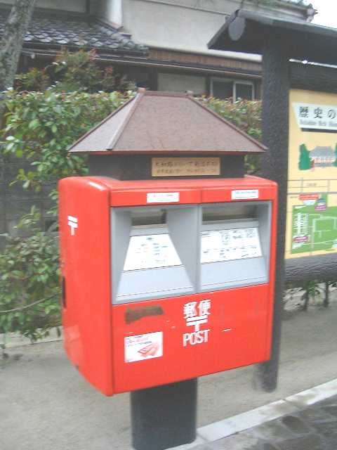 奈良の唐招提寺の前にあったポスト。 あいにくと、時間が遅くて唐招提寺は閉まっていたが、唐招提寺のお寺をかたどった物であろう。 |