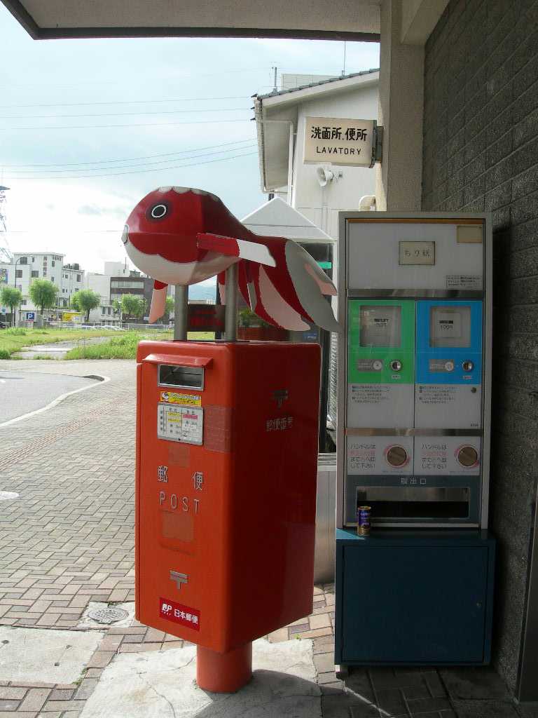 これは、赤くないポスト。 ポストらしくないが、郵便物を投函できるポストとのこと。 説明が付いていた。