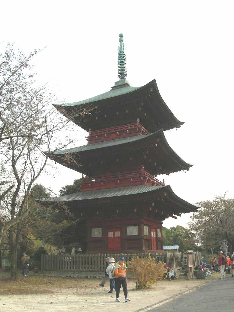 西福寺は、真言宗豊山派の寺で、弘仁年間(810〜824)に弘法大師が国家鎮護のため創建したと伝えられる古刹である。寺内には三重塔と観音堂がある。 ここの三重塔は、三代将軍家光公の長女千代姫が奉建したもので、高さ約23メートルあり、県下では一番高い木造の建造物である。棟札銘文によると、この塔は、元禄6年(1693)3月27日に建立完成されたもので、かつては、櫓を組んで塔の頂上まで参詣者に登らせた時もあったが、現在では廃止されている。塔は、鉄製の釘を一本も使わず細工によって作り上げてあり、構造は方三間で、一層の天井から真上に一本の柱をたて、その柱から、二層、三層の屋根に梁を渡しバランスをとって、風にも地震にも耐えるように工夫されている。一層の天井近くにある「蟇股」には、十二支を表す動物の彫刻が刻まれ、方向を示している。 また、入口正面にある観音堂には、西国、板東、秩父札所の百の観音像が安置され、この一堂に参詣すれば、百か所の観音霊場を参詣したと同じだけの功徳(御利益)があるとされ、春秋の行楽シーズンには、多くの参詣者で賑わうところである。 昭和58年3月 埼玉県