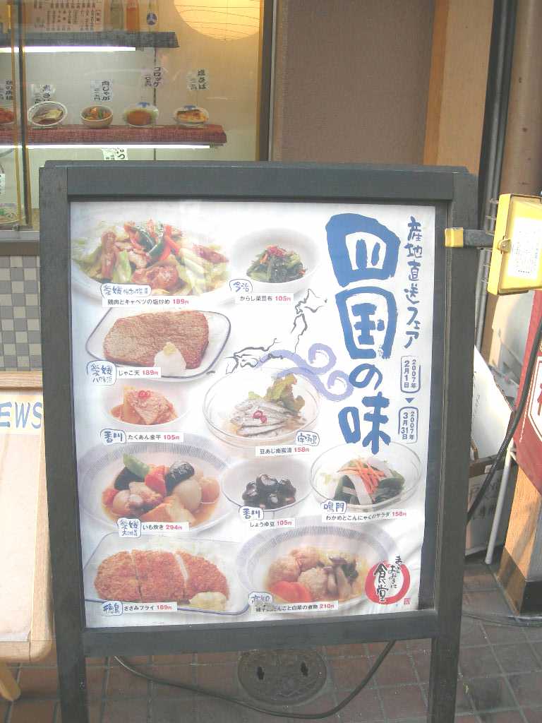 食堂の幟で、「産地直送フェア 四国の味」として、2007年2月1日から3月31日までの期間限定の企画らしい。
