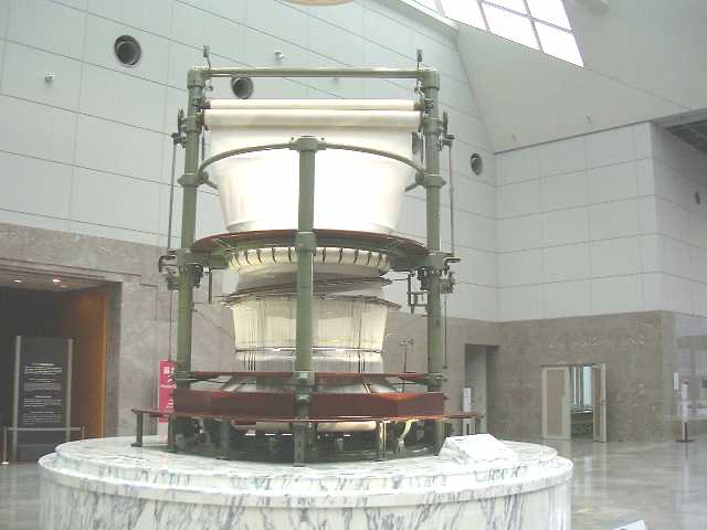 :織物製造の際、緯糸を通す杼道を作るために経糸を上げさせる道具。 |