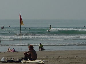 日差し厳しい、風は穏やか・・ 今日はサーファーが多め・・。