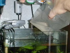 なのにさらに今度はサブ水槽から水を移し入れます。