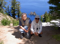 138号線を東に渓流沿いに山を登る。Diamond Lake あたりで雪をいただいた山が見える。Crater Lake national Park 北ゲイトから大昔爆発した火山 Mt. Mazama の裾野の大平原にでる。Red Cone 2,245m grouse 、Hill 2,260m の二つの山の間を越えて、Crater Lake Rim Driveに入る。時計回りで、Llao Rock 2,453m を迂回、View PointでSteel Bay を見下ろす。雪をいただいた山を映す湖水は深い青でしばし感嘆。湖水面 1,882m 最深さ -593m 摩周湖と構造は同じだが規模が5倍。しかも晴れ渡っている。Cloud cap Overlook 2,427m は雪が残り、眺望が素晴らしい。南斜面の裾野を下ると Pinnacles Overlookがある。 ここには煙突状の火山が造った柱が林立している。このあたりは大昔の湖で、海底火山のように噴出物が柱状に堆積したらしい。Crater Lake に浮かぶPhantom Shipも同じ構造だ。Rim Driveに戻り、Phantom Ship Overlook からの眺めがまたいい。Sun Notch Trailを歩く、ここからもPhantom Ship が良く見える。Rim Village で遅い昼食。湖水に浮かぶWizard Island 2,116mを見下ろす。カッキリ1周してから Rim Village へ戻り、62号線で園外へ、急遽 Las Vegas's へ行くことも視野に入れ足を延ばす。Klamath Falls で銀行・買い物の後、街角のモーテルで泊まる。プレスビーも泊まったらしい。