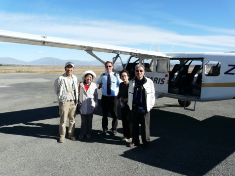 タカポの上空から、天文台、アレクサンドリア湖、レーク・プカキとそれに注ぎ込むタスマン氷河を超え、高度を上げて、マウントクック(3754m)をハチマキ1周してタスマン海側へ、