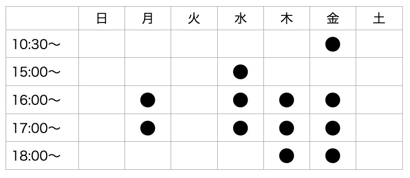 ※振替可能です。ご都合が悪い場合はお問い合わせ下さい。